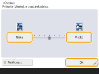 Če želite kopirati izvirnike, ki vsebujejo besedilo ali tanke črte, ostrino nastavite na <Visoko>. Če želite kopirati izvirnike, ki vsebujejo natisnjene fotografije ali druge poltone, ostrino nastavite na <Nizko>.
