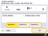 Izberite nastavitev, ki jo želite priklicati, in pritisnite <OK>.