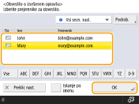 Cilj za e-pošto z obvestilom mora biti določen v imeniku. Vnaprej registrirajte želeni cilj. Registracija prejemnikov v Imenik