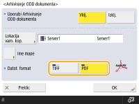 Če možnost <Arhiviranje ODD dokumenta> nastavite na <Da>, neposrednega pošiljanja ne morete uporabljati.