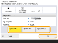Niz nastavitev za prejemnika, optično branje ali pošiljanje lahko pred pritiskom gumba  (Start) pošljete kot eno skupino predhodnih nastavitev.