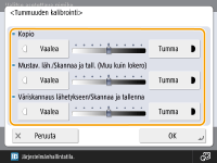 Če je ta možnost nastavljena na stran <Temno>, so povečana območja, natisnjena z največjo gostoto. Če je ta možnost nastavljena na stran <Svetlo>, bodo območja, besedilo in črte natisnjeni kot poltoni z manjkajočimi pikami. To nastavitev uporabite zlasti za prilagoditev vmesnih gostot.