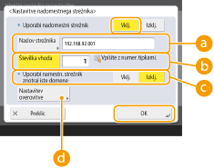 Možnost <Uporabi nadomestni strežnik> nastavite na <Da>, konfigurirajte potrebne nastavitve in pritisnite <OK>.