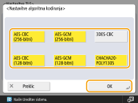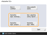 Če možnost <Formatiranje metode kodiranja na FIPS 140> nastavite na <Da>, lahko poskrbite, da bo način šifriranja komunikacij TLS skladen s standardom FIPS (Federal Information Processing Standards) 140. <Formatiranje metode kodiranja na FIPS 140>