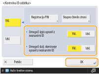 Če izberete <Ne>, je treba pri izvajanju ustreznega opravila vnesti ID oddelka.