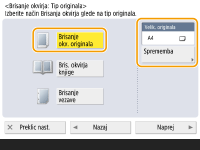 Če se velikost, prikazana v <Velik. originala>, razlikuje od velikosti knjige, pritisnite <Sprem.>, da izberete velikost. Optično lahko preberete samo velikosti izvirnikov, ki so prikazane na zaslonu na dotik.