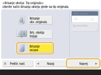 Pritisnite <Brisanje okvirja originala> in potrdite <Velik. originala>.