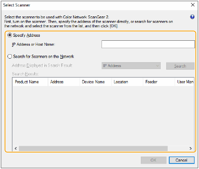 Kliknite [Specify Address] in v polje [IP Address or Host Name] vnesite naslov IP ali ime naprave.
