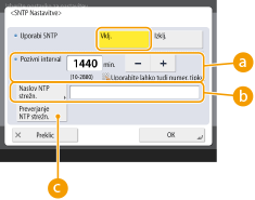 Pritisnite <Da> v možnosti <Uporabi SNTP> in določite potrebne nastavitve.