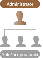 Priporočamo, da za upravljanje naprave vzpostavite sistem, v katerem nekoga imenujete za skrbnika, ki nato upravlja, kako splošni uporabniki uporabljajo napravo. Skrbniki določijo pravila za uporabo naprave in upravljanje pomembnih nastavitev, kot sta omrežje in varnost. Skrbniki po potrebi določijo dostop za vsakega uporabnika.
