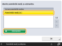 Izberite pomnilniški medij, ki ga želite odstraniti, in pritisnite <Odstranitev>.