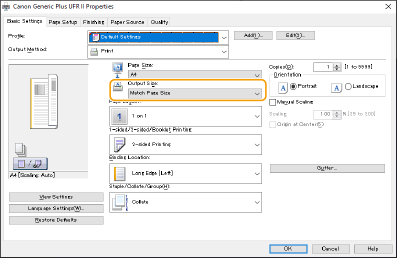 Možnost [Velikost izpisa] v gonilniku tiskalnika nastavite na velikost papirja, na katerega želite tiskati.