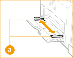 Tryck på den övre delen av den högra styrskenan och skjut den samtidigt för att anpassa den till formatindikatorn för det papper som ska fyllas på.