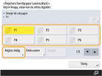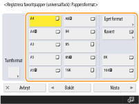 Om du registrerar pappersformat du använder ofta på knapparna <S1> till <S4>, kan du hämta dem med ett knapptryck. Registrera papper i fritt format (eget format)