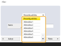 Om du vill ändra eller ta bort information för mottagare registrerade i adressboken, se Redigera registrerade mottagare i adressboken.
