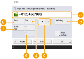 ) ett i taget.![]() /![]() Tryck för att flytta markören i faxnummerfältet (