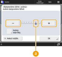 Tryck på knapparna <-> eller <+> för att minska eller öka värden, t.ex. när du justerar tätheten. Varje gång du trycker på knappen, flyttas skjutreglaget (
