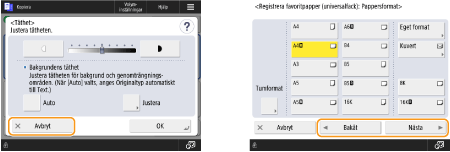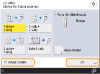 Tryck på <OK> och för att tillämpa inställningar och tryck på <Avbryt inställn.> för att förkasta ändringarna och återställa tidigare inställningar.