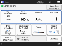 Du kan ändra inställningarna för skärmbildsvisningen, som t.ex. vilken skärmbild som visas när du slår på maskinen och om meddelandet för återstående papper och toner ska visas. <Visningsinställningar>