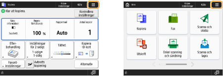 som visas på skärmen <Hem> och skärmen med grundläggande funktioner för att anpassa skärmen genom att t.ex. flytta på knappar eller skapa genvägstangenter. Anpassa pekskärmen