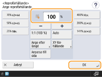 Du kan förstora eller förminska genom att ange reproförhållandet (%). Du kan ange olika värden för det vertikala och horisontella förhållandet.