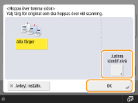 Om originalets storlek är mindre än det inställda scanningsformatet kan det komma att inte hoppas över korrekt.