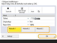 Tryck på <Tidigare inställningar> på skärmbilden med grundläggande faxfunktioner.