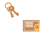 Maskinen kan generera den nyckel och det certifikat (servercertifikat) som ska användas för TLS-krypterad kommunikation. Om du vill använda TLS-krypterad kommunikation med en gång, kan du använda den nyckel och det certifikat som är förinstallerat i enheten. Om det behövs kan en administratör generera en nyckel och ett certifikat. Observera emellertid att TLS-krypterad kommunikation inte aktiveras bara genom att du skapar en nyckel och ett certifikat. Konfigurera nyckel och certifikat för TLS