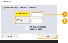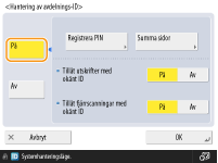 Du kan även göra att ange sju siffror till ett krav för avdelnings-ID och -PIN. Kontakta din återförsäljare eller servicerepresentant för mer information.