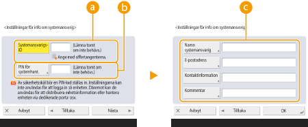 Du kan även göra att ange sju siffror till ett krav för systemansvarigs-ID och systemansvarigs-PIN. Kontakta din återförsäljare eller servicerepresentant för mer information.