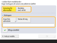 Om du vill välja vilken mottagare som ska meddelas från <Adressbok>, måste du registrera mottagaren i förväg. Registrera mottagare i adressboken