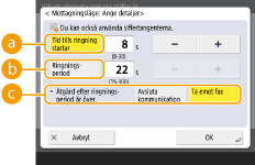 <Åtgärd efter ringningsperiod är över.>: <Avsluta kommunikation>, <Ta emot fax>
