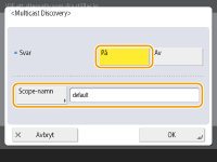 Ange ett omfångsnamn som angetts med inställningar för Multicast Discovery-inställningar i <Scope-namn>.