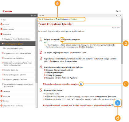 Kullanıcı Kılavuzu için metin boyutu, düzen ve görüntüleme yöntemi gibi ayarları belirtmek için tıklatın.