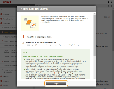 Simgeye tıkladığınızda, geçerli sayfa kararabilir ve bir açılır pencere görüntülenebilir. Sayfaya dönmek için açılır penceredeki [Kapat] öğesini tıklatın.