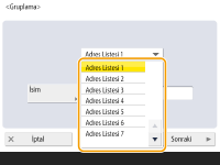 Adres Defterine kayıtlı olan birden fazla hedef (Adres Defterine Hedef Kaydetme), bir grup oluşturacak şekilde birleştirilebilir. Aynı gruba farklı hedef tipleri kaydedilebildiğinden aynı anda belge göndermek ve verileri yedeklemek için bu özelliği kullanabilirsiniz. Örneğin, e-posta adreslerini ve dosya sunucusu IP adreslerini tek bir grup halinde kaydedebilirsiniz.