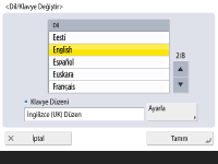 Dokunmatik ekran panelinde ve klavyede görüntülenen dili değiştirebilirsiniz.