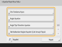 (Ayarlar/Kayıt) seçeneğine basılarak görüntülenen herhangi bir ayar öğesi için kısayol oluşturabilirsiniz. Oldukça alt düzeyde sağlanan bir ayar öğesini sık kullanıyorsanız ekranı hızla değiştirmek için söz konusu öğenin kısayolunu kolayca kullanabilirsiniz.