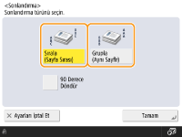 <İş Oluşturma> seçeneğine basmanız, orijinal plaka camına yerleştirilmişse bile Sırala/Grupla fonksiyonunu kullanmanızı sağlar.Bir grup çıktısı sırasında her sayfanın arasına iş ayırıcı ekleyin.<Grupla (Aynı Sayfalar)> öğesini seçerseniz, her grup arasına bir iş ayırıcı ekleyebilirsiniz. Daha fazla bilgi için bkz. <Gruplar Arası İş Ayırıcı>. <Gruplar Arası İş Ayırıcı>