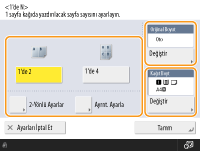 2-yönlü kopyalar yapmak veya 1-yönlü kopyalar yapmak üzere 2-yönlü orijinalleri taramak için <2-Yönlü Ayarları> seçeneğine basın. Ayar hakkında daha fazla bilgi için