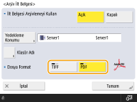 Tarama Temel Özellikleri ekranında, bir faks hedefini içeren birden fazla hedefe göndererek gönderilen belgenin bir kopyasını kaydedebilirsiniz. Tarama Temel Özellikleri ekranında faks hedeflerini görüntülemek için <Tarama ve Gönd. Fonksiyonunda Faksı Etkin Kıl> öğesinin <Açık> olarak ayarlanması gerekir. <Faks Fonksiyonunu Göster>