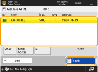<Detaylar> seçeneğine bastığınızda göndericinin adı ve alınan sayfa sayısı dahil, belge hakkındaki bilgileri kontrol edebilirsiniz.
