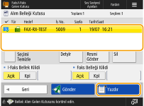 <Detaylar> seçeneğine bastığınızda göndericinin adı ve alınan sayfa sayısı dahil, belge hakkındaki bilgileri kontrol edebilirsiniz. <Resmi Göster> seçeneğine bastığınızda belgenin içeriklerini kontrol etmenin yanı sıra sayfaları seçebilir ve silebilirsiniz.