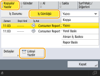 <İş Günlüğü> <Listeyi Yazdır> seçeneğine basın. |