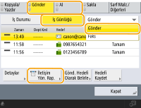 Listeden <Gönder> veya <Al> öğesini seçin ve <İletişim Yön. Rap.> seçeneğine basın.