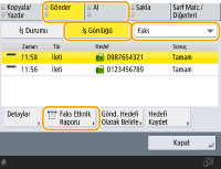 Listeden <Faks> öğesini seçin ve <Faks Etknlk Raporu> seçeneğine basın.