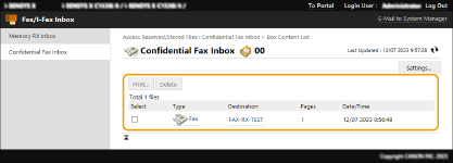 Portal sayfasında [Alınan/Saklanan Dosyalara Erişim] öğesine tıklayın. Uzak Kullanıcı Arabirimi Ekranı