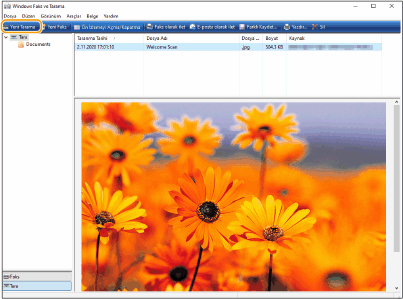 Tarama tamamlandığında, taranan belge [Windows Faks ve Tarama] ekranındaki dosyalar listesinde görüntülenir ve [Belgeler] içindeki [Taranmış Belgeler] klasörüne kaydedilir.