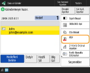 Şifrelenmiş PDF dosyası geri çağrıldığında ve Sık Kullanılan Ayarlardan gönderildiğinde