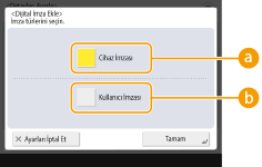 Dijital imzayı boyutunu seçin ve <Tamm> seçeneğine basın.